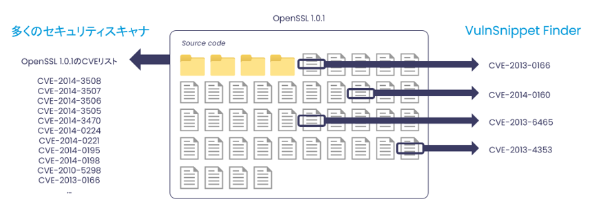 管理されていない(パッケージマニフェストで宣言されていない)OSSを扱う場合、脆弱性をもたらすコード部分を正確に把握することは極めて重要です