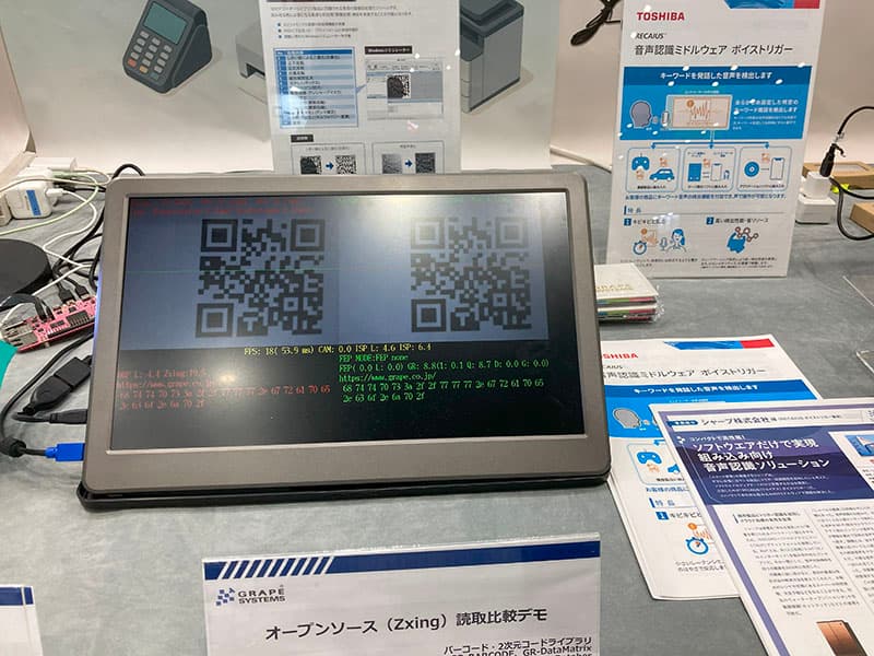 多くの組込機器で採用実績のある、QRコード、DataMatrixコード、一次元バーコード、GS1Databarのソースコードライブラリ製品を、ルネサス社製RZ/A2Mを使用した評価ボード「GR-MANGO」にて、各コードをマルチリードし、またオープンソースライブラリであるZXingとの比較するデモを用意しました。実際の性能をお試しいただきました