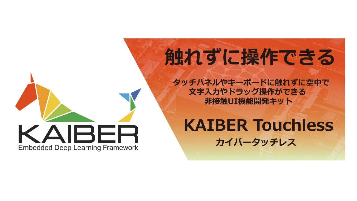 KAIBER Touchless は、タッチパネルやキーボードに触れることなく、空中での文字入力やドラッグ操作を可能にする非接触UI機能開発キットです。 開発元であるディープインサイト社は、AI画像認識技術を専門とするソフトウエア開発企業です。非接触UIやジェスチャー認識分野で培ってきた独自特許技術とToFカメラを組み合わせることで、指先のジェスチャーをリアルタイムにAI認識し、高精度な非接触操作を実現しています。