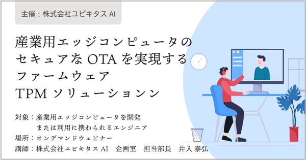 本ウェビナーでは、TPM2.0準拠でArm® TrustZone対応のファームウェアTPM「SEC-TPM」と、TPMの活用を容易にするAPI「Ubiquitous TPM Security」が紹介されます。産業エッジ機器におけるセキュリティ強化に関心のある方におすすめです。